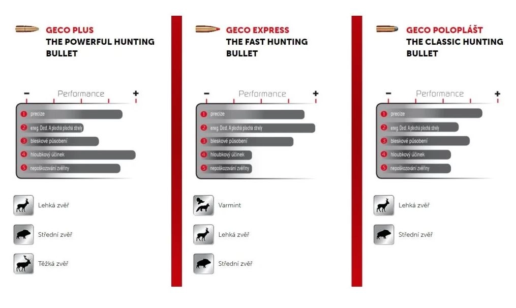 jistá deformace a stabilita, olověné jádro pro vyvážený účinek, TS plášť pro precizi a zušlechťování vnitřku hlavně