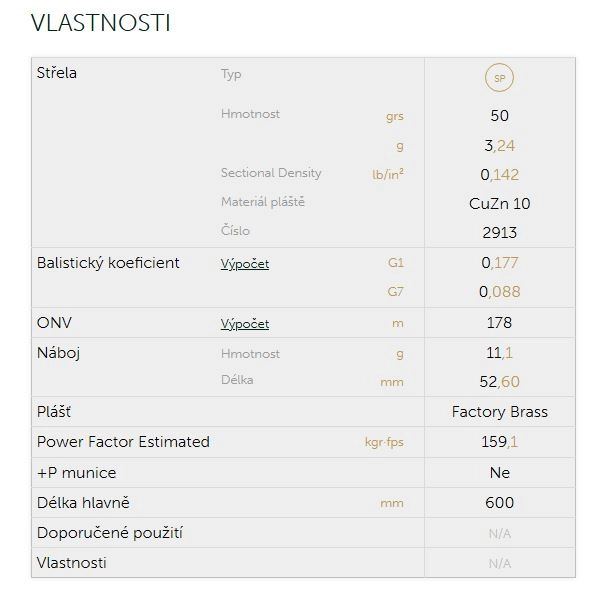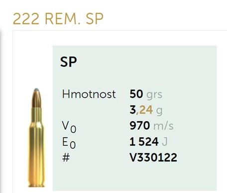 SP - poloplášťová střela sestávající z kovového pláště a olověného jádra. Střela je řešena tak, že se v přední části obnažené olověné jádro při zásahu cíle deformuje do hřibovitého tvaru, což umožňuje rychlé předání kinetické energie. Střela se vyznačuje sníženou odrazivostí.