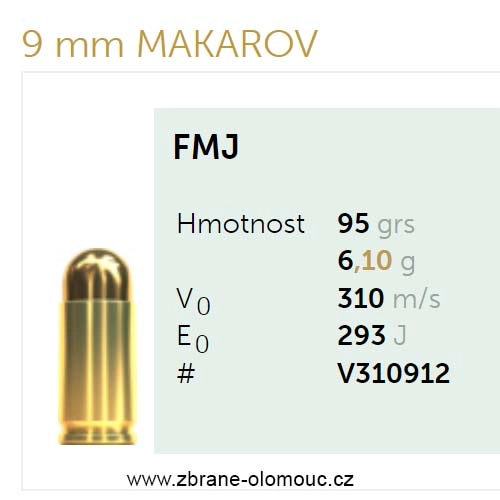 SB 9mm MAKAROV 95grs/6,1g néboje balení 50 ks