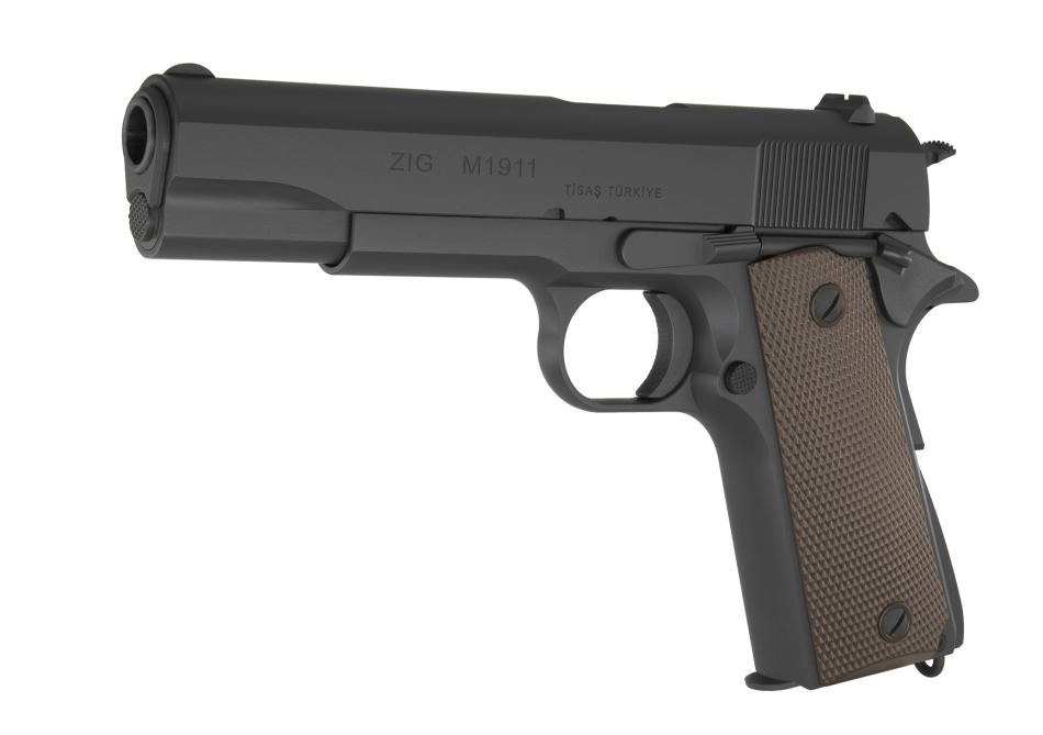 Pistole Tisas ZIG M1911 je spolehlivá zbraň v ráži .45 ACP v klasickém designu vzoru 1911 s mířidly A1, s povrchovou úpravou parkerizováním a dřevěnými střenkami.